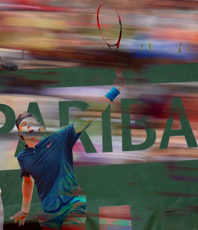 (Christopher Johnson took these copyrighted photos of Shapovalov in the rain of Roland Garros last year. Copyright Globalite Media all rights reserved.)